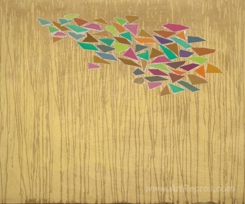 We offer you a handcrafted reproduction on canvas of the famous artwork 'Colors on Tan' by Robert Goodnough, from the Reproduction Museum.