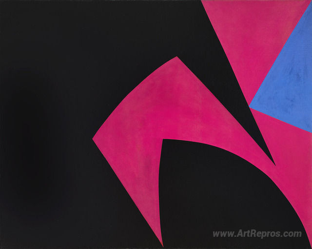 We offer you a handcrafted reproduction on canvas of the famous artwork 'Magical Space Forms (Black, Fuchsia)' by Lorser Feitelson, from the Reproduction Museum.