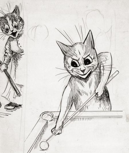 We offer you a handcrafted reproduction on canvas of the famous artwork 'A GAME OF SNOOKER' by Louis Wain, from the Reproduction Museum.