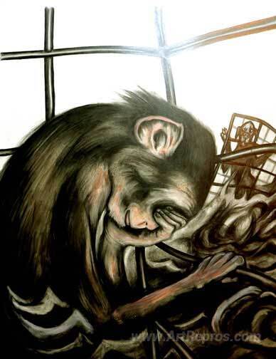 We offer you a handcrafted reproduction on canvas of the famous artwork 'monkey' by Sue Coe, from the Reproduction Museum.