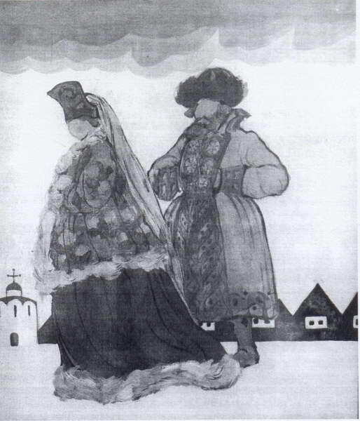 We offer you a handcrafted reproduction on canvas of the famous artwork 'Boyarin and boyarynia' by Nicholas Roerich, from the Reproduction Museum.