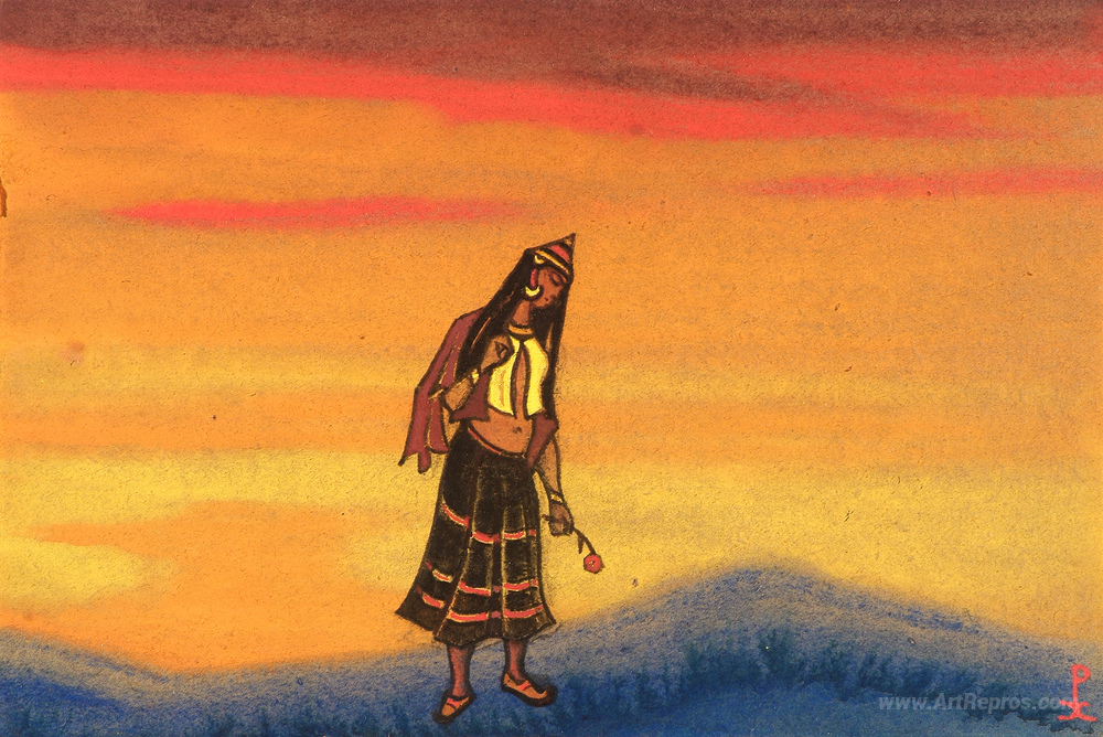 We offer you a handcrafted reproduction on canvas of the famous artwork 'Captive with rose' by Nicholas Roerich, from the Reproduction Museum.