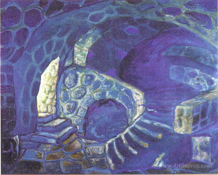 We offer you a handcrafted reproduction on canvas of the famous artwork 'Corridors of the castle. Dungeons' by Nicholas Roerich, from the Reproduction Museum.