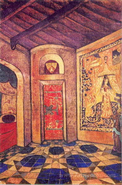 We offer you a handcrafted reproduction on canvas of the famous artwork 'Room of queen Anna' by Nicholas Roerich, from the Reproduction Museum.