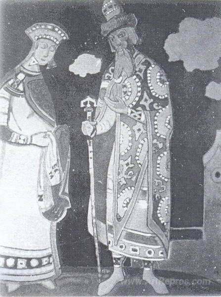 We offer you a handcrafted reproduction on canvas of the famous artwork 'Snow Maiden and Berendey' by Nicholas Roerich, from the Reproduction Museum.