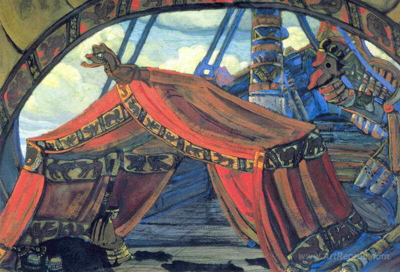 We offer you a handcrafted reproduction on canvas of the famous artwork 'Study of scene design for "Tristan und Isolde"' by Nicholas Roerich, from the Reproduction Museum.