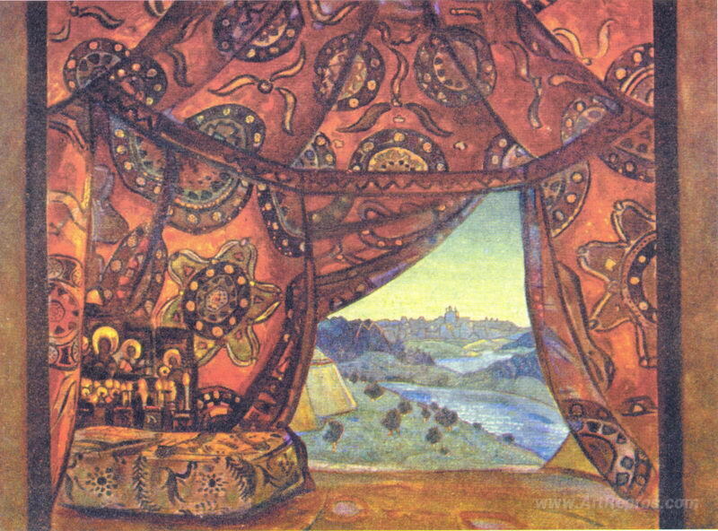 We offer you a handcrafted reproduction on canvas of the famous artwork 'Tent of Ivan the Terrible' by Nicholas Roerich, from the Reproduction Museum.