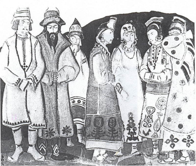 We offer you a handcrafted reproduction on canvas of the famous artwork 'The scene with seven figures in costumes' by Nicholas Roerich, from the Reproduction Museum.