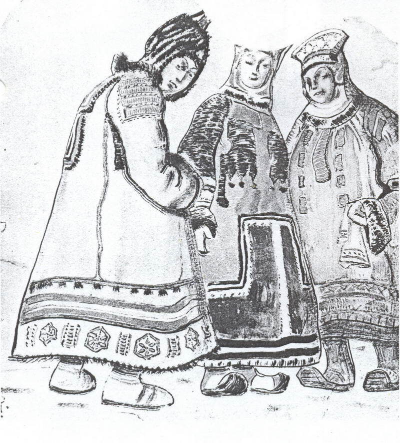 We offer you a handcrafted reproduction on canvas of the famous artwork 'The scene with three figures in costumes' by Nicholas Roerich, from the Reproduction Museum.
