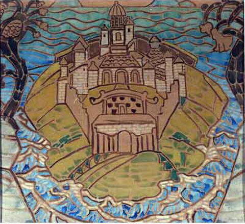 We offer you a handcrafted reproduction on canvas of the famous artwork 'Town (sketch for carpet)' by Nicholas Roerich, from the Reproduction Museum.