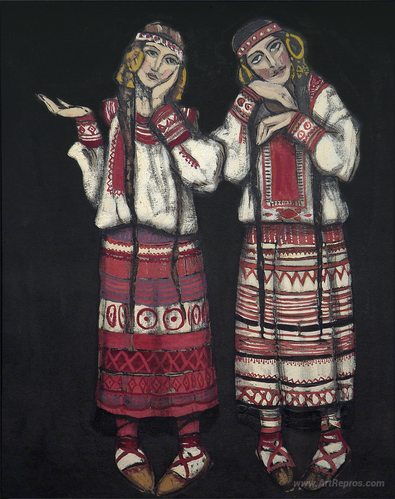 We offer you a handcrafted reproduction on canvas of the famous artwork 'Two girls' by Nicholas Roerich, from the Reproduction Museum.
