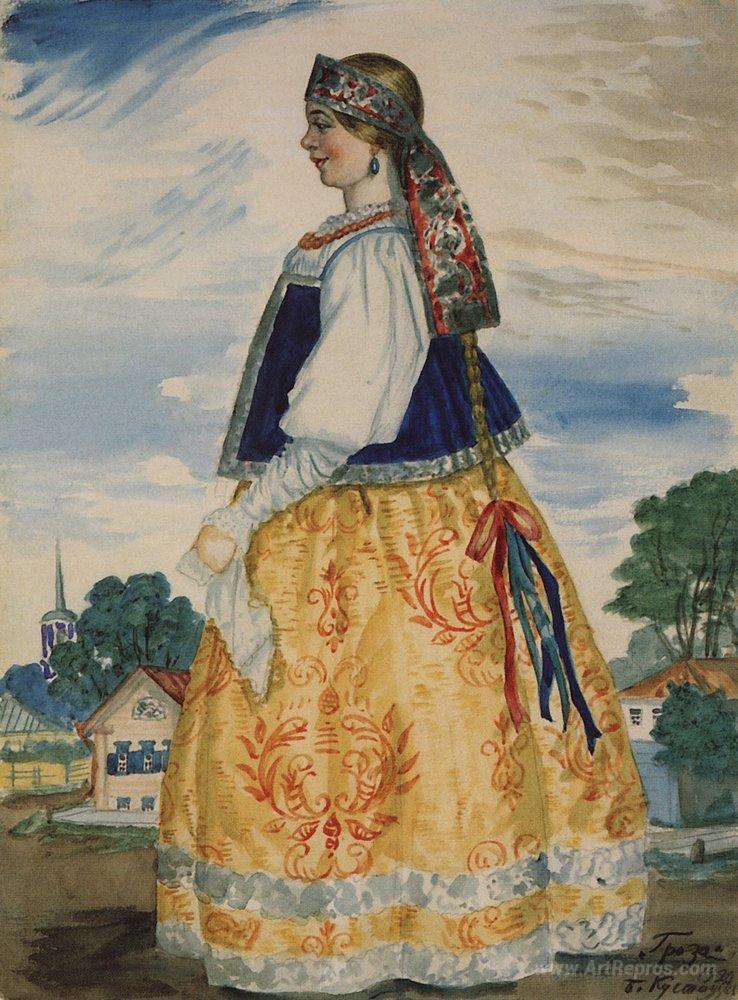 We offer you a handcrafted reproduction on canvas of the famous artwork 'Varvara. Costume Design for Nikolai Ostrovsky's 'The Thunderstor' by Boris Kustodiev, from the Reproduction Museum.