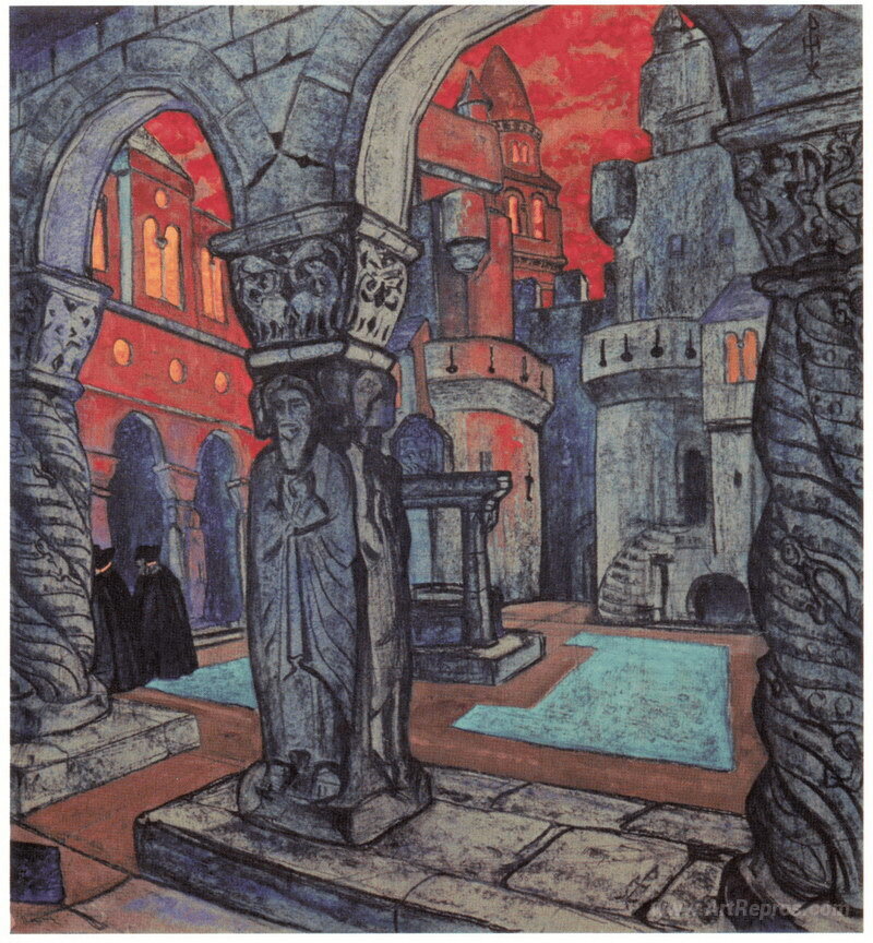 We offer you a handcrafted reproduction on canvas of the famous artwork 'Yard of castle' by Nicholas Roerich, from the Reproduction Museum.