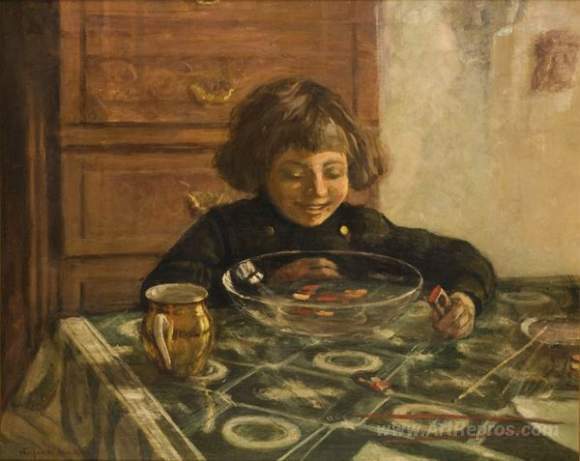 Welcome to our exquisite collection of oil paintings, where we proudly showcase the timeless artistry of Nikolay Bogdanov-Belsky, a master painter renowned for his enchanting depictions of everyday life. With a background in both landscape and genre painting, Bogdanov-Belsky skillfully captures intimate moments filled with warmth and nostalgia. His enchanting work, А child sitting at a table, beautifully illustrates the innocence and curiosity of childhood.