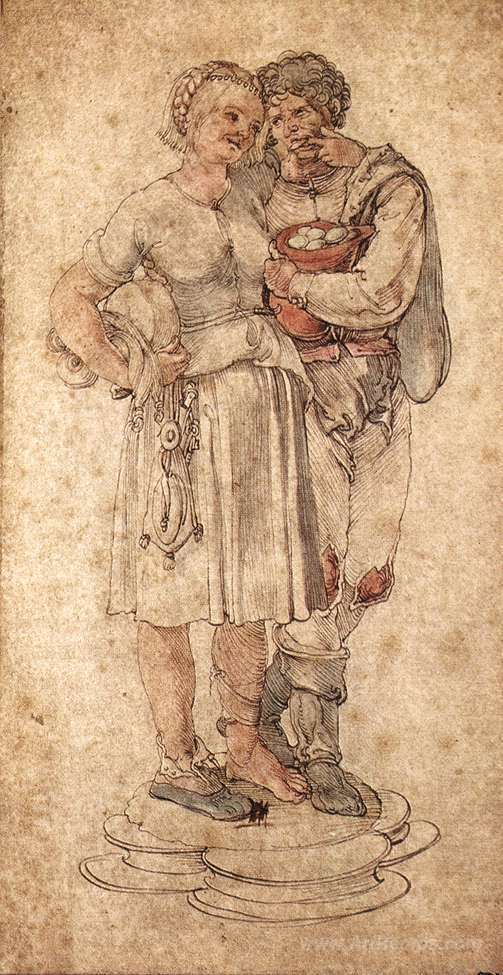 We offer you a handcrafted reproduction on canvas of the famous artwork 'Amorous Peasants' by Albrecht Durer, from the Reproduction Museum.