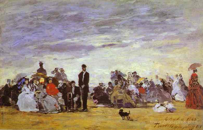 We offer you a handcrafted reproduction on canvas of the famous artwork 'Beach at Trouville' by Eugene Boudin, from the Reproduction Museum.
