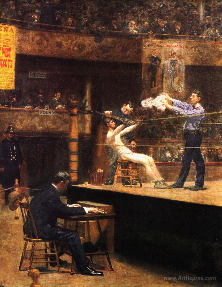We offer you a handcrafted reproduction on canvas of the famous artwork 'Between Rounds' by Thomas Eakins, from the Reproduction Museum.