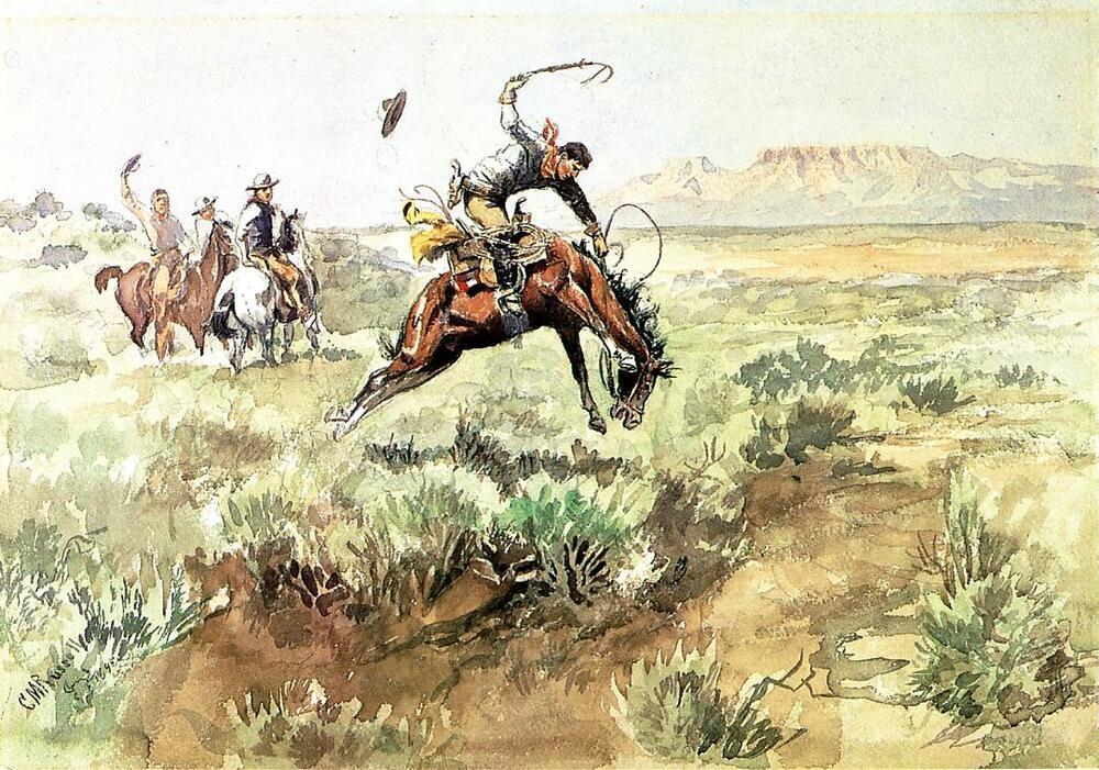 We offer you a handcrafted reproduction on canvas of the famous artwork 'Bronco Busting ' by Charles M. Russell, from the Reproduction Museum.