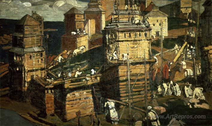 We offer you a handcrafted reproduction on canvas of the famous artwork 'Building a City' by Nicholas Roerich, from the Reproduction Museum.