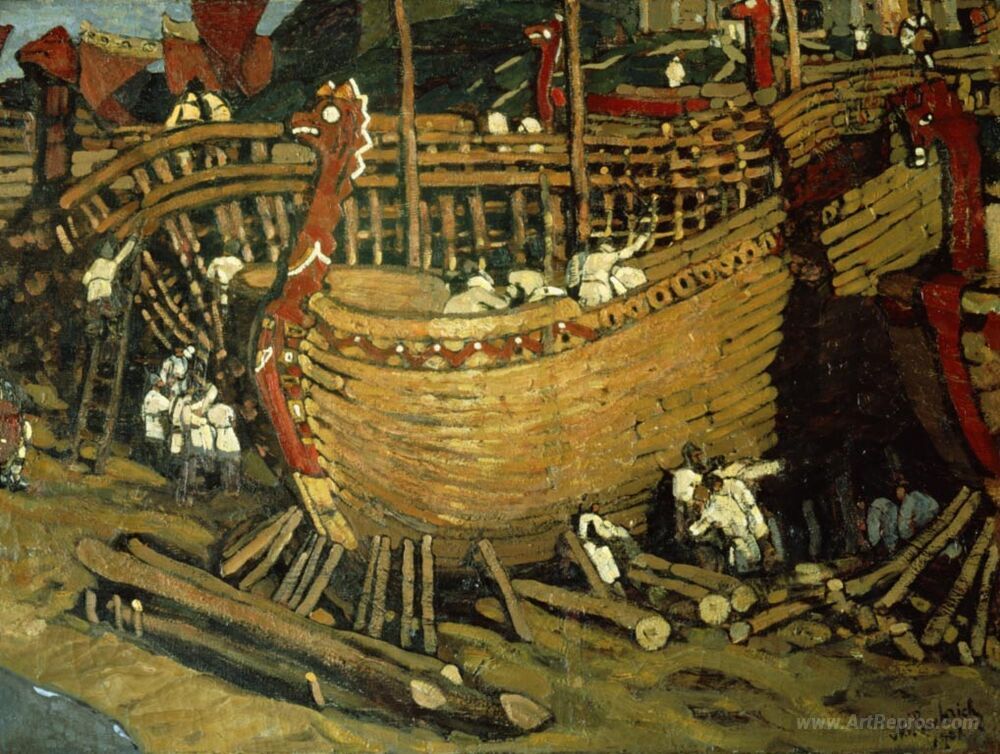 We offer you a handcrafted reproduction on canvas of the famous artwork 'Building the ships' by Nicholas Roerich, from the Reproduction Museum.