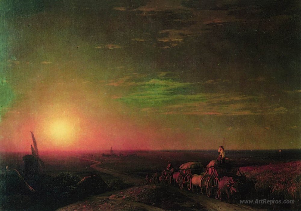 We offer you a handcrafted reproduction on canvas of the famous artwork 'Chumaks Waggons' by Ivan Aivazovsky, from the Reproduction Museum.