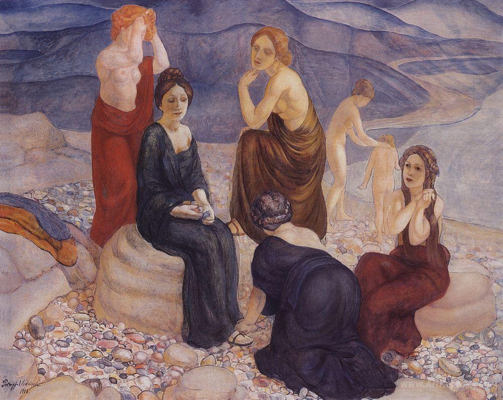 We offer you a handcrafted reproduction on canvas of the famous artwork 'Coast ' by Kuzma Petrov-Vodkin, from the Reproduction Museum.