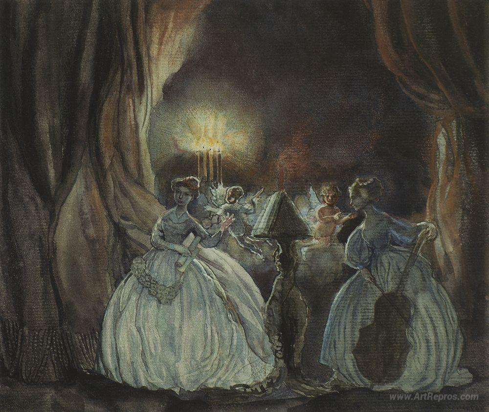 We offer you a handcrafted reproduction on canvas of the famous artwork 'Concert' by Konstantin Somov, from the Reproduction Museum.