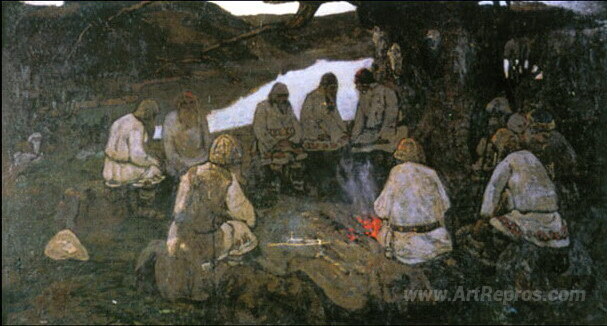We offer you a handcrafted reproduction on canvas of the famous artwork 'Elders Gathering' by Nicholas Roerich, from the Reproduction Museum.