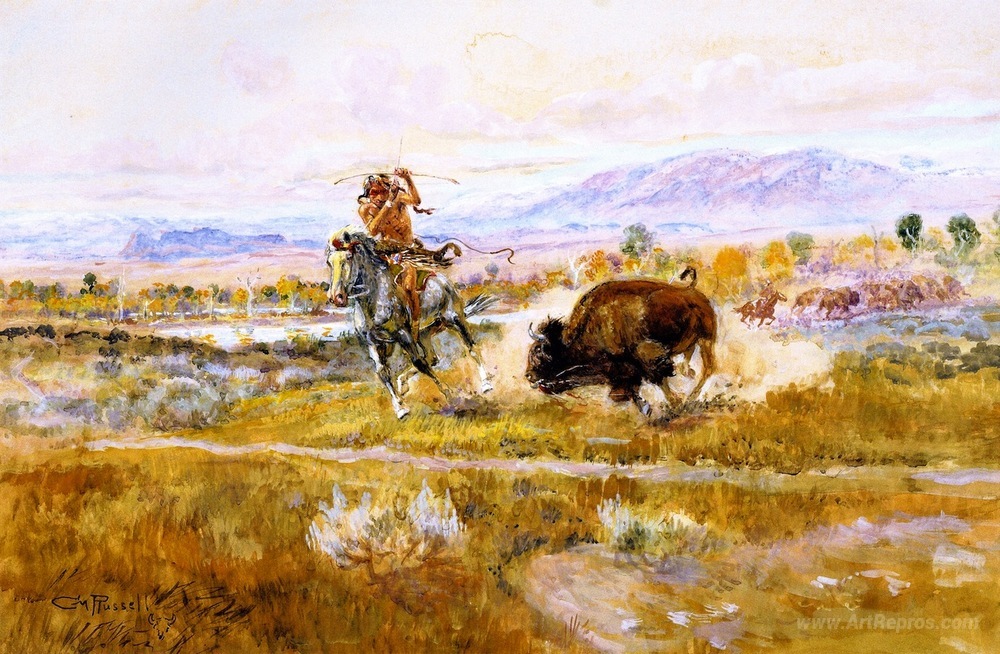 We offer you a handcrafted reproduction on canvas of the famous artwork 'Fighting Meat ' by Charles M. Russell, from the Reproduction Museum.