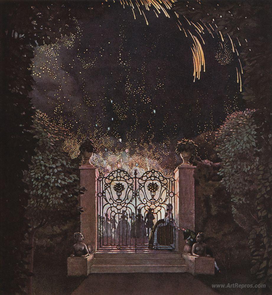 We offer you a handcrafted reproduction on canvas of the famous artwork 'Fireworks in the Park' by Konstantin Somov, from the Reproduction Museum.