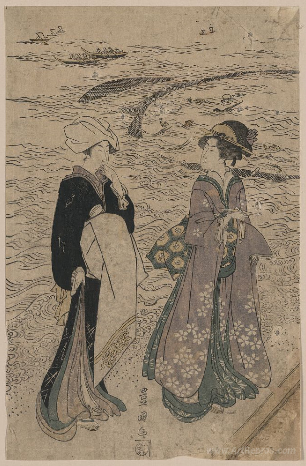 The style of Fishing Net evokes a sense of tranquility and harmony, making it a perfect addition to any home or office space. Each brushstroke speaks to the artist's profound connection with nature and life’s subtleties. This stunning artwork not only enhances the aesthetic appeal of your environment but also creates an inviting atmosphere that sparks conversation and inspires reflection. Allow Utagawa Toyokuni’s masterful portrayal to transform your space into a sanctuary of elegance and artistic expression.