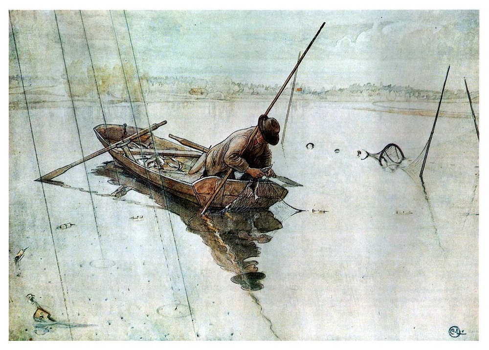 We offer you a handcrafted reproduction on canvas of the famous artwork 'Fishing' by Carl Larsson, from the Reproduction Museum.