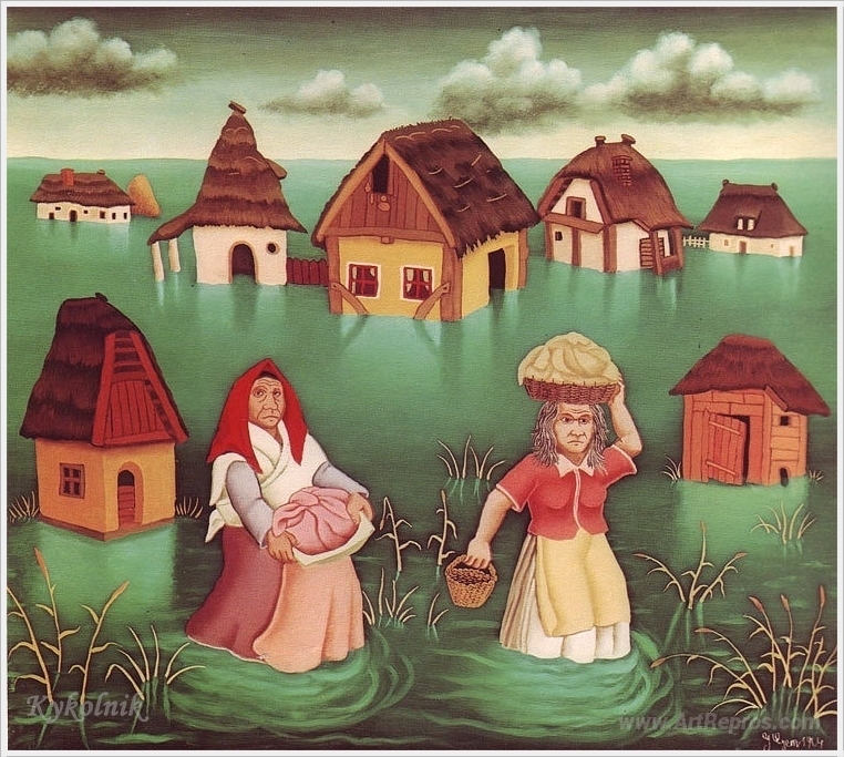 We offer you a handcrafted reproduction on canvas of the famous artwork 'Flood in village ' by Ivan Generalic, from the Reproduction Museum.