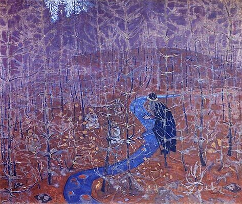 We offer you a handcrafted reproduction on canvas of the famous artwork 'Forest people' by Nicholas Roerich, from the Reproduction Museum.