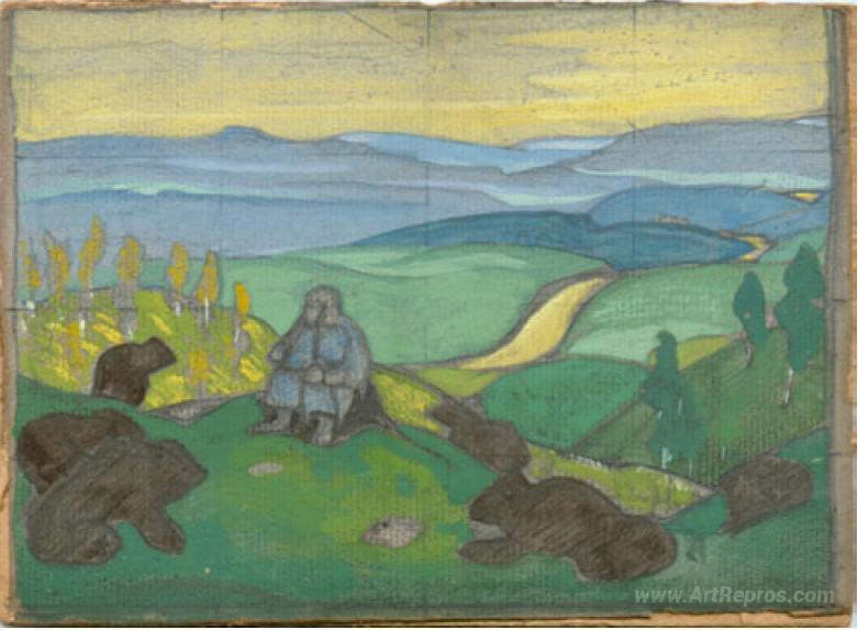 We offer you a handcrafted reproduction on canvas of the famous artwork 'Human ancestors (study)' by Nicholas Roerich, from the Reproduction Museum.