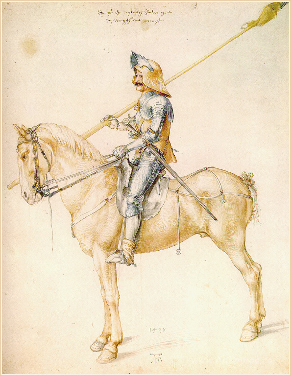 We offer you a handcrafted reproduction on canvas of the famous artwork 'Knight On Horseback' by Albrecht Durer, from the Reproduction Museum.
