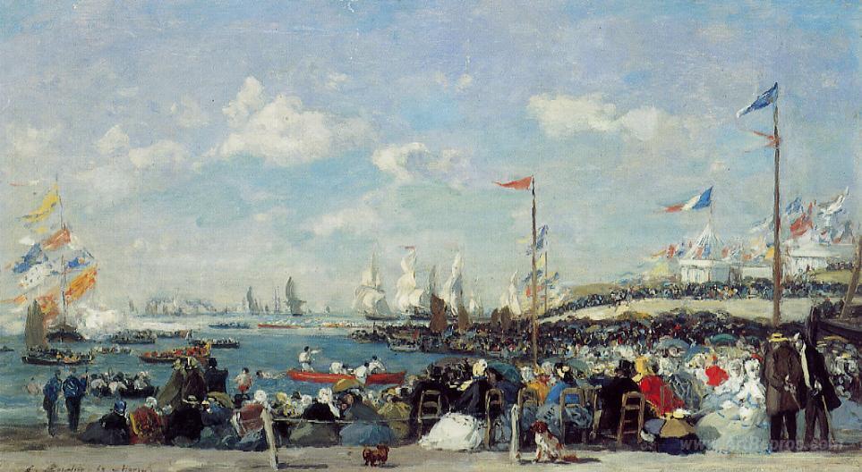 We offer you a handcrafted reproduction on canvas of the famous artwork 'Le Havre, the regatta festival' by Eugene Boudin, from the Reproduction Museum.
