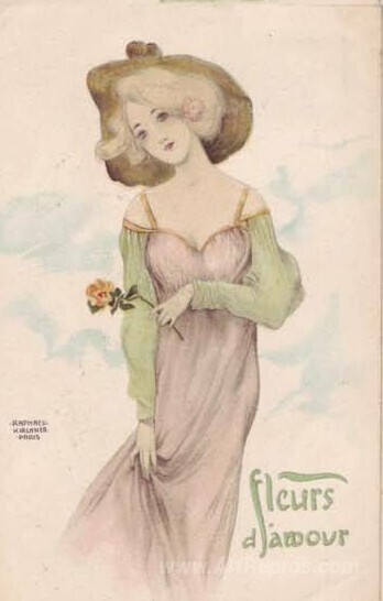 We offer you a handcrafted reproduction on canvas of the famous artwork 'Love Flowers' by Raphael Kirchner, from the Reproduction Museum.
