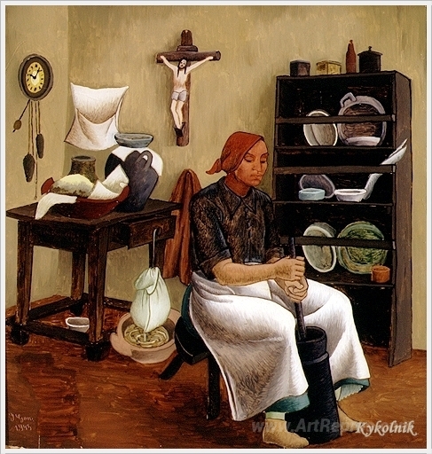 We offer you a handcrafted reproduction on canvas of the famous artwork 'Making Cheese ' by Ivan Generalic, from the Reproduction Museum.