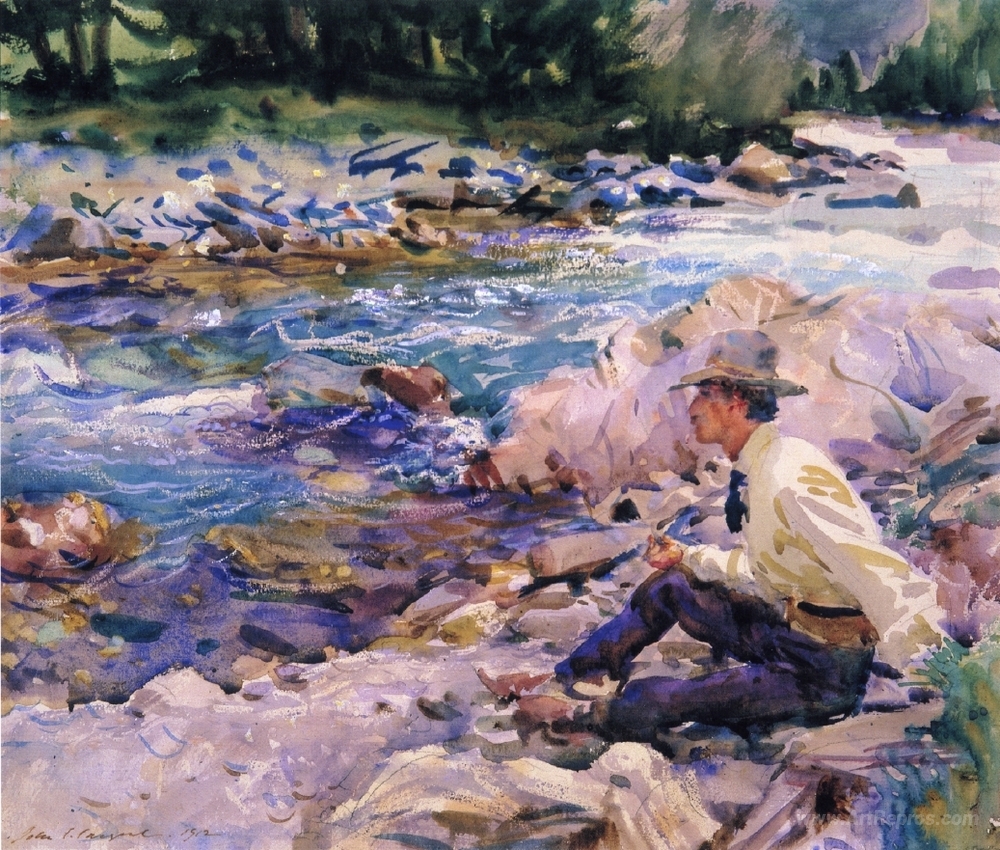 We offer you a handcrafted reproduction on canvas of the famous artwork 'Man Seated by a Stream' by John Singer Sargent, from the Reproduction Museum.