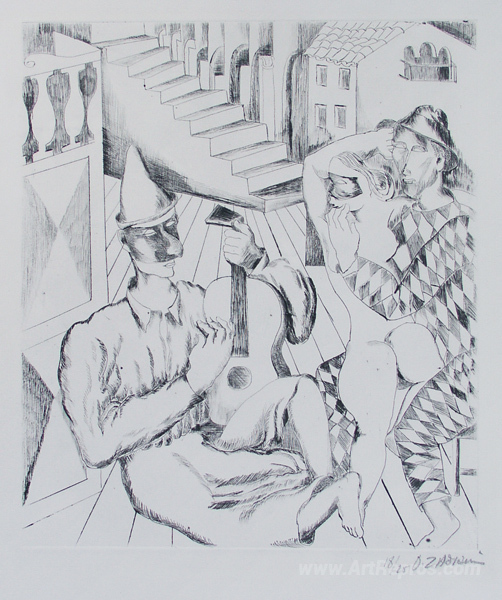 We offer you a handcrafted reproduction on canvas of the famous artwork 'Masquerade' by Ossip Zadkine, from the Reproduction Museum.