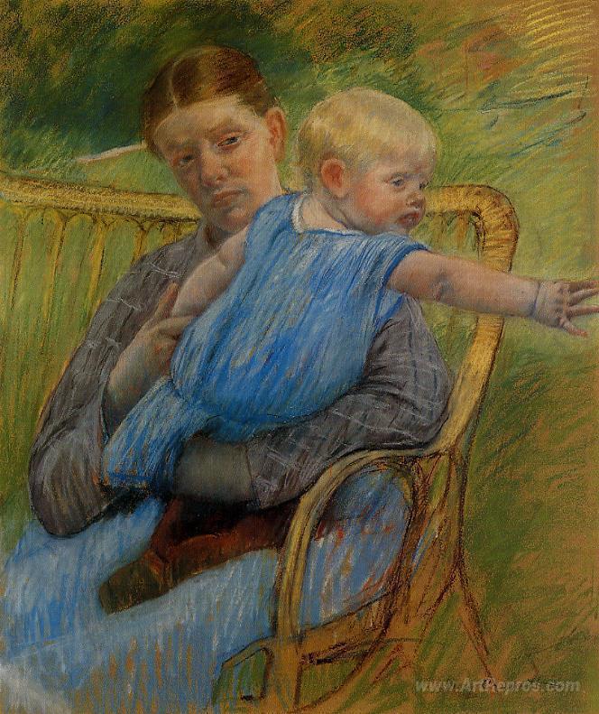 We offer you a handcrafted reproduction on canvas of the famous artwork 'Mathilde Holding a Baby Who Reaches out to the Right' by Mary Cassatt, from the Reproduction Museum.