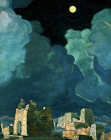 We offer you a handcrafted reproduction on canvas of the famous artwork 'Mekheski - Moon People' by Nicholas Roerich, from the Reproduction Museum.