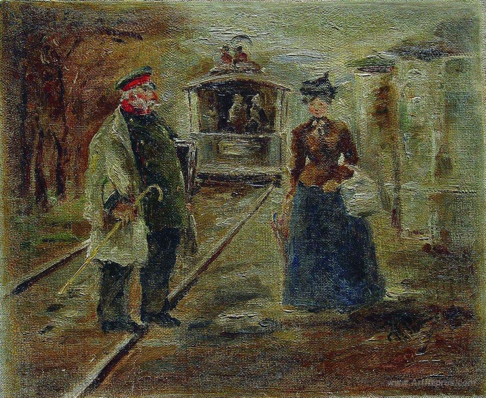 We offer you a handcrafted reproduction on canvas of the famous artwork 'On the platform of the station. Street scene with a receding car' by Ilya Repin, from the Reproduction Museum.