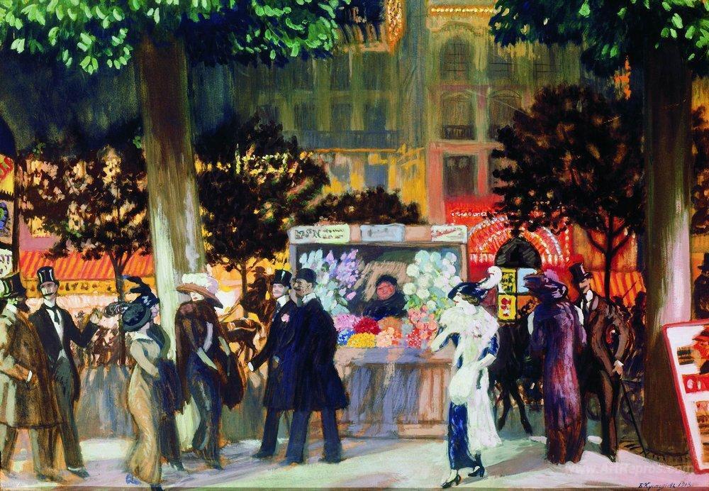 Welcome to our exquisite collection of oil paintings, where tradition meets modern elegance. Among our standout offerings is the captivating piece entitled Paris Boulevard at Night by the renowned artist Boris Kustodiev. Known for his ability to evoke emotion through vibrant colors and meticulous brushwork, Kustodiev creates a dreamlike atmosphere that transports viewers into the heart of Parisian nightlife.