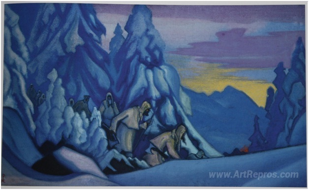 We offer you a handcrafted reproduction on canvas of the famous artwork 'Partisans' by Nicholas Roerich, from the Reproduction Museum.