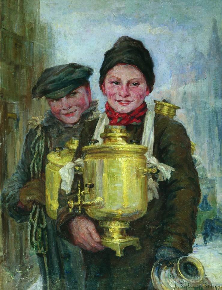 The captivating scene of Sbitenschiks exemplifies Bogdanov-Belsky's signature style, characterized by dynamic compositions and a profound understanding of light and shadow. As it graces your space, this piece not only enhances the aesthetic appeal of your environment but also serves as a conversation starter, enriching your home or office with the allure of a bygone era. Discover the transformative power of oil paintings and let Sbitenschiks bring warmth and sophistication into your life.