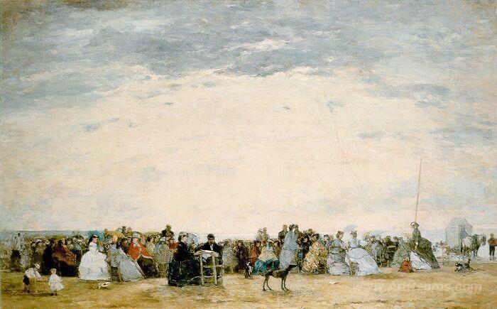 We offer you a handcrafted reproduction on canvas of the famous artwork 'The Beach at Trouville' by Eugene Boudin, from the Reproduction Museum.