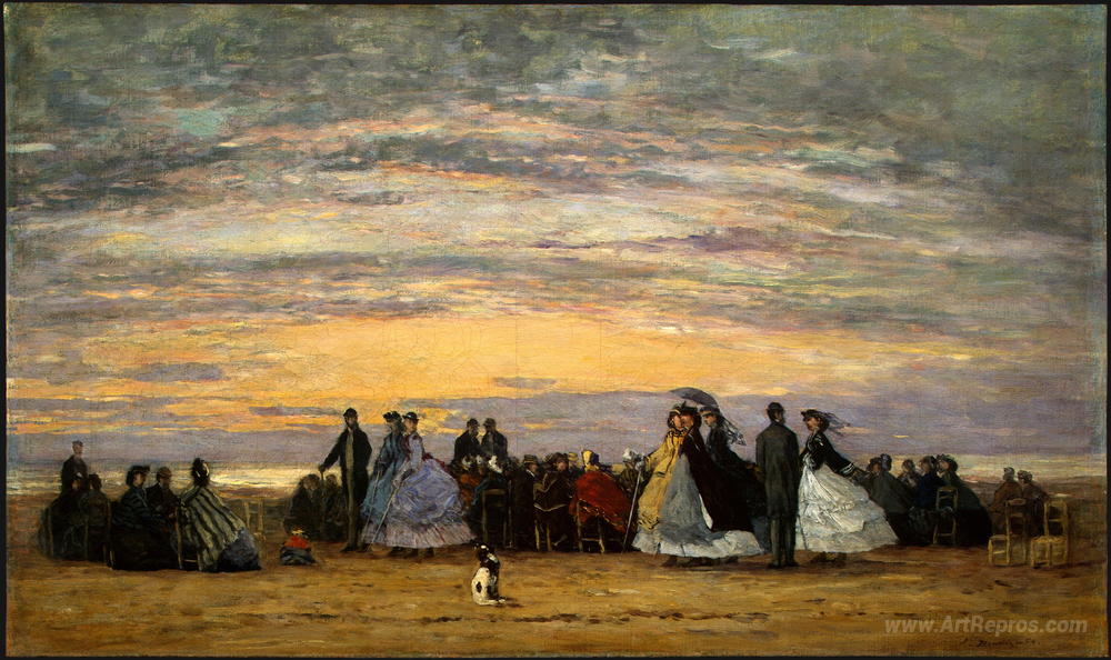 We offer you a handcrafted reproduction on canvas of the famous artwork 'The Beach at Villerville' by Eugene Boudin, from the Reproduction Museum.