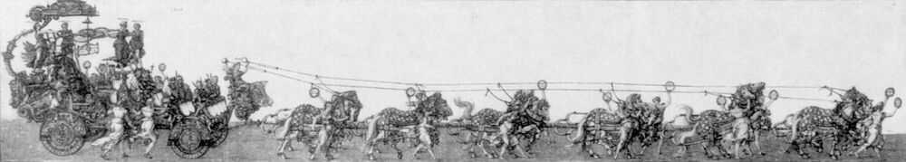 We offer you a handcrafted reproduction on canvas of the famous artwork 'The great chariot' by Albrecht Durer, from the Reproduction Museum.